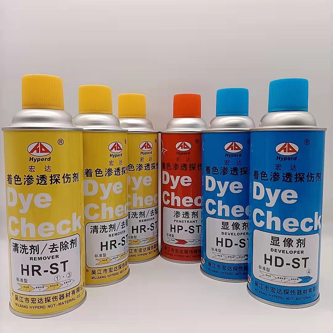 将显像剂充分摇匀后,对被检工件表面(已经清洗干净、干燥后的工件)保持距离150mm-300mm均匀喷涂,喷洒角度为30°- 40°,显像时间不小于7分钟。