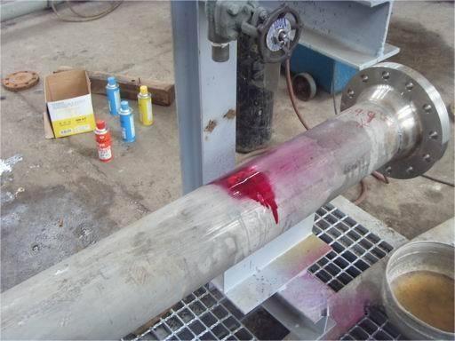 火红彩票 着色探伤是无损检测的一种方法,它是一种表面检测方法,主要用来探测诸如肉眼无法识别的裂纹之类的表面损伤,如检测不锈钢材料近表面缺陷(裂纹)、气孔、疏松、分层、未焊透及未熔合等缺陷(也称为PT检测)。适用于检查致密性金属材料(焊缝)、非金属材料(玻璃、陶瓷、氟塑料)及制品表面开口性的缺陷(裂纹、气孔等)。